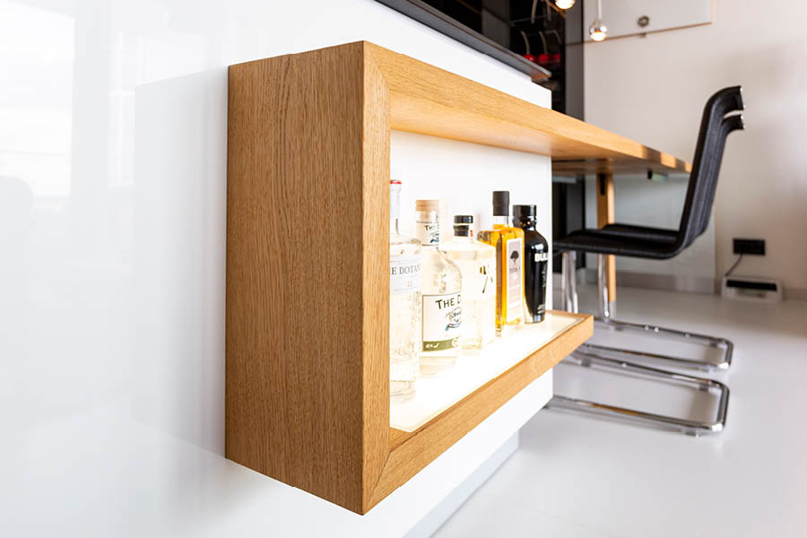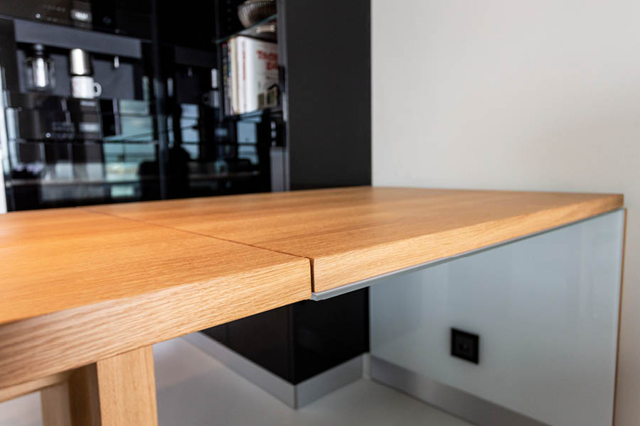 Neben der optischen Wirkung überzeugt diese Hochglanzküche auch mit intelligenten Lösungen im Detail. Jedes Element wurde sorgfältig im Rahmen unserer Küchenplanung durchdacht, um Funktionalität und Ästhetik miteinander zu verbinden – typisch für die Maßarbeit von woodendesign:
